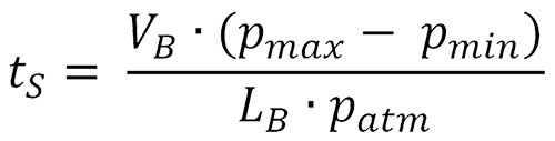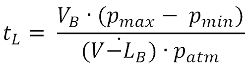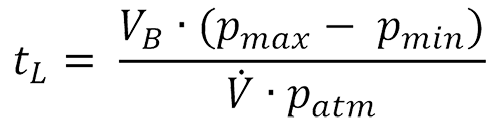 Die Beladezeit ergibt sich zwar aus dieser Formel, kann aber so nicht genau angegeben werden, da der Volumenstrom des Nachverdichters nicht bekannt ist. |